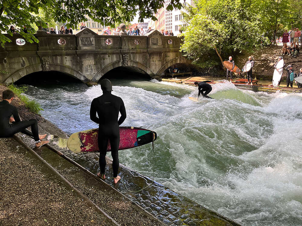 Escape the hustle and bustle of the city by spending some time in the English Garden. This sprawling park, larger than New York's Central Park, offers tranquil paths, a tranquil lake and even a wave machine for surfers in the River Eisbach.
